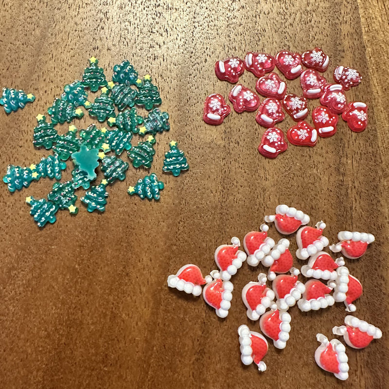 - Das Set enthält: 2x Tannenbaum, 2x Weihnachtsmütze, 2x Fäustlinge